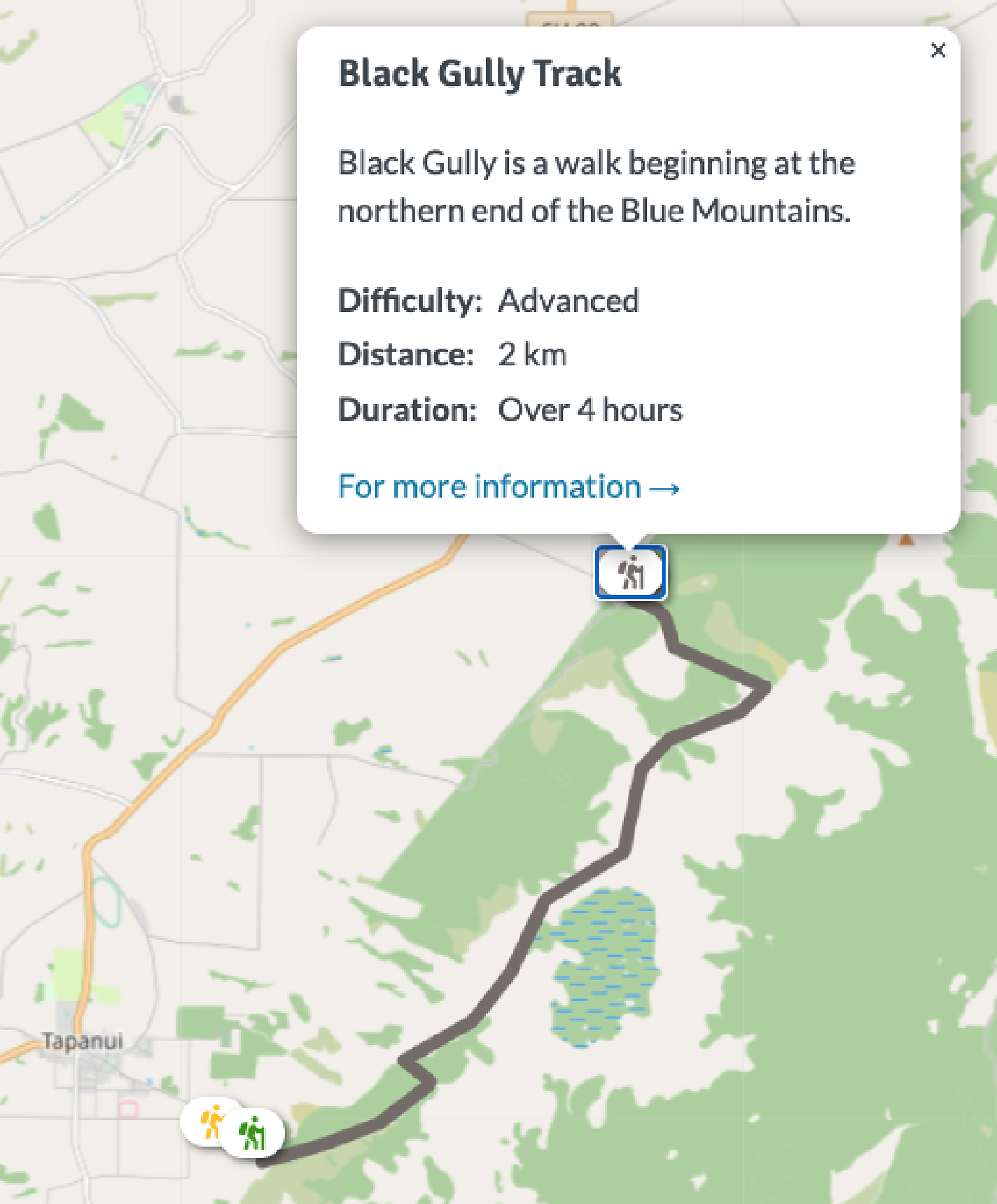 Utilising the data collected by the Department of Conservation and other sources, we were able to display the latest information about all of the walking tracks in the region. This includes the geospatial information collected by DOC workers walking the tracks.