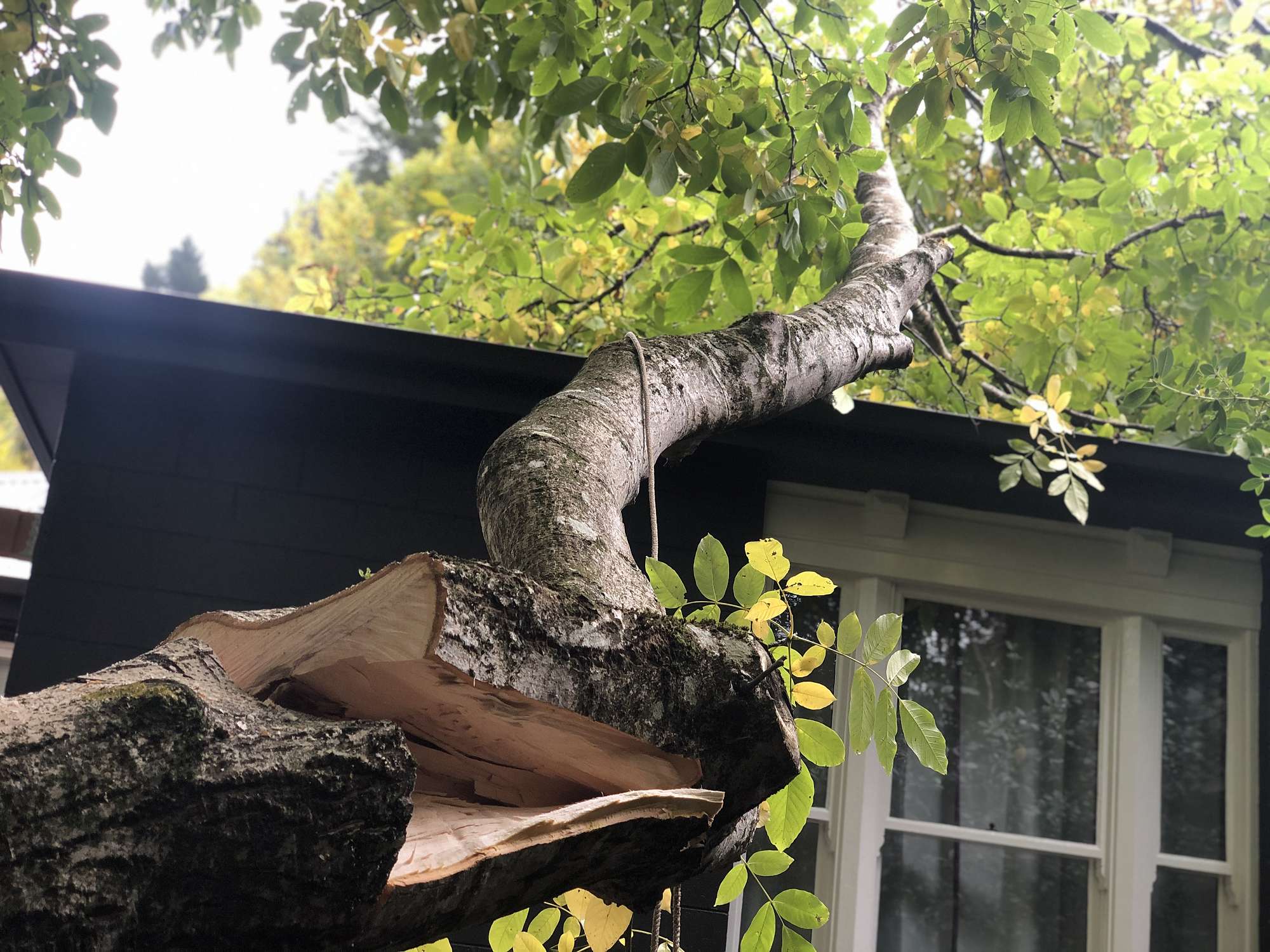 To cut a long story short, let's just say the first cut was not ideal and a branch came down onto the roof.