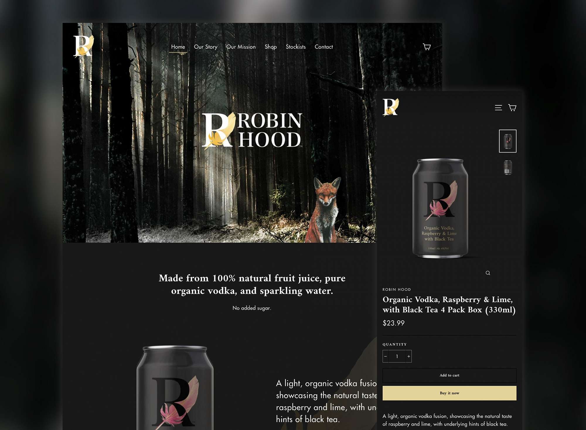 Robin Hood celebrates a healthier approach to drinking, using premium quality natural ingredients with no sugar, a drink to be sipped and enjoyed, the goodness doesn't end there though, Robin Hood's philosophy is "to improve the well-being and sustainability of our communities".