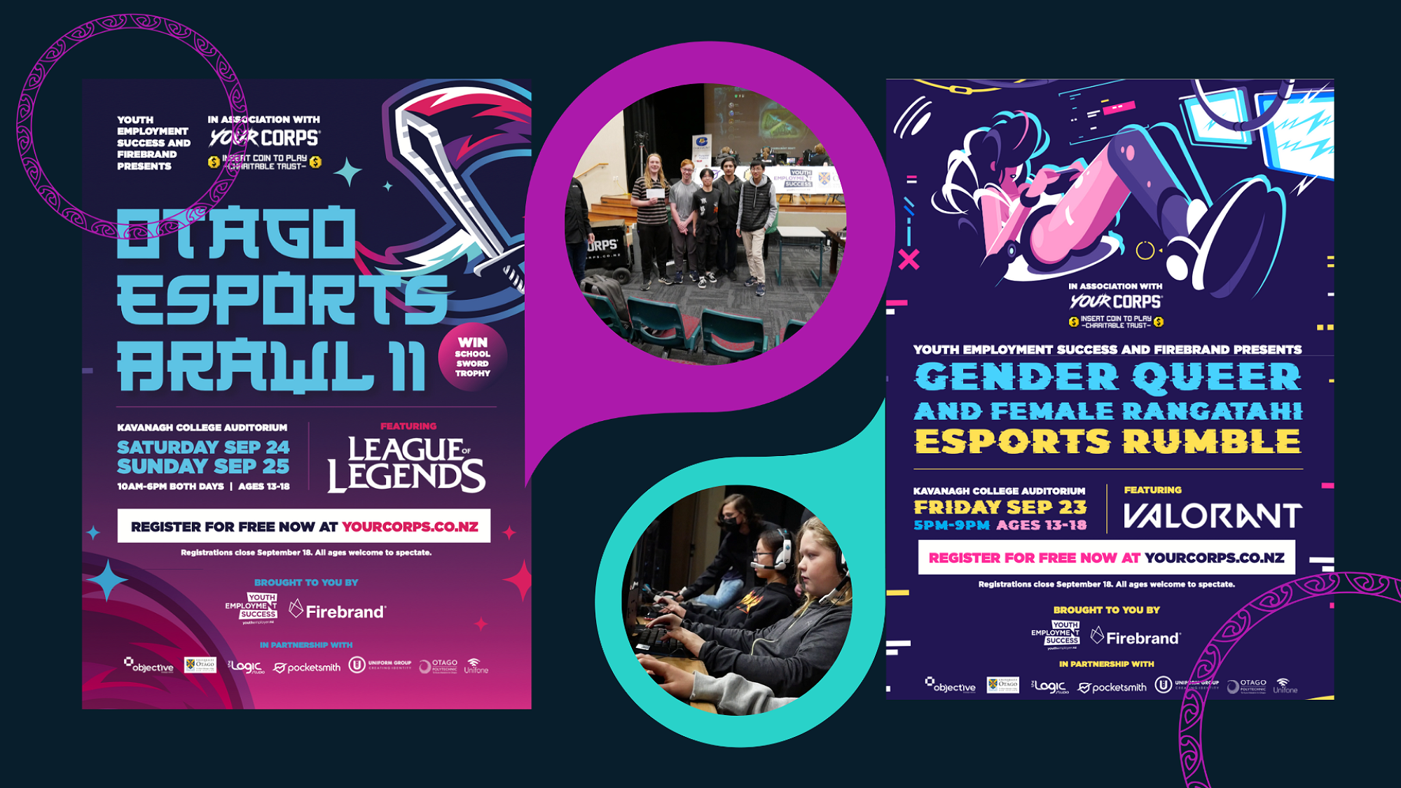 We sponsored the Rangatahi Rumble & Otago E-Sports Brawl held in Dunedin at the Kavanagh High School Auditorium in collaboration with Duncan Trickey (Otago Girls High School), Your Corps & The Insert Coin to Play Charitable Trust.